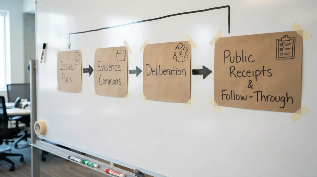 Deliberative democracy is different from debate. Debate is trying to win. Deliberation is trying to choose well under constraints, and to produce a recommendation that decision-makers can actually use.