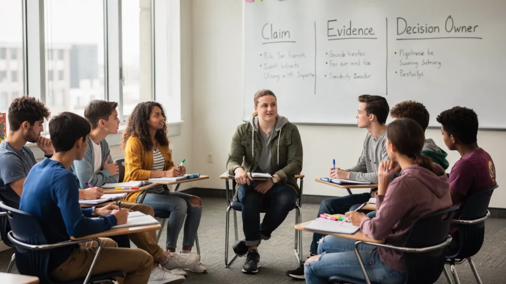 Most successful student efforts do both: discursive first (clean up the debate), deliberative second (produce a decision-grade proposal).