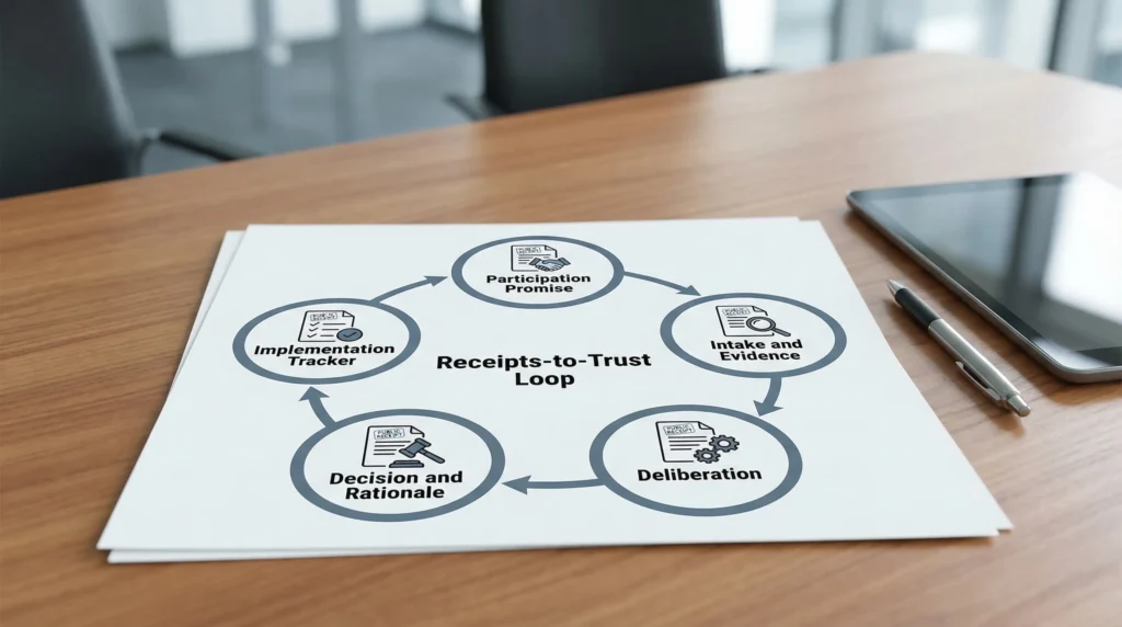 Receipts solve the “black box” problem. When outsiders can see the evidence base, the deliberation rules, and the rationale, deliberation stops looking like elite choreography and starts looking like legitimate public reasoning.